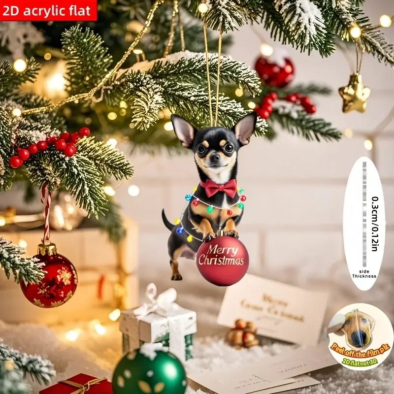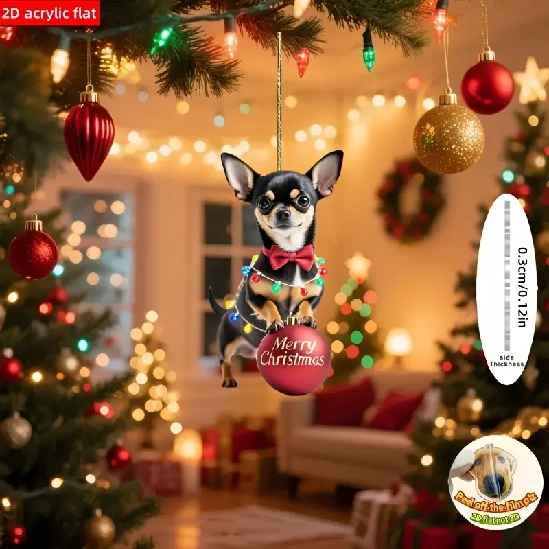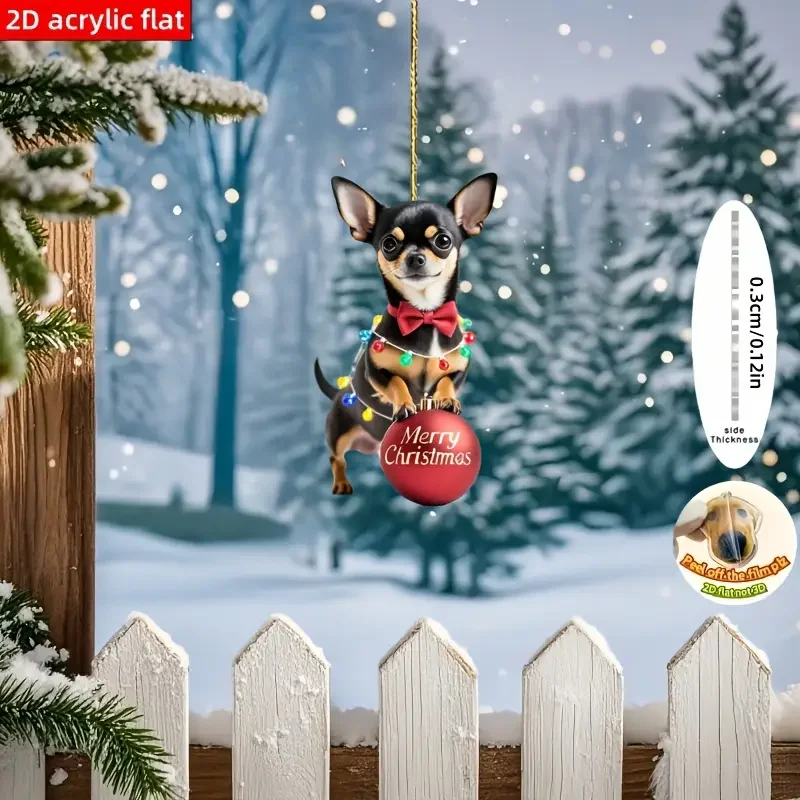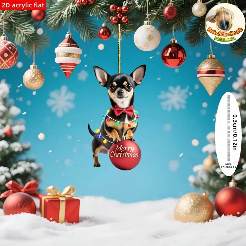 2D Plan -1pc, Christmas atmosphere holding Christmas ball with Chihuahua dog pattern design, Christmas decoration pendant, acrylic flat Christmas gift, Christmas decoration backpack decoration home decoration pendant, car hanging decoration, no electricity required, holiday home decoration | Detailed craftsmanship, Christmas decoration