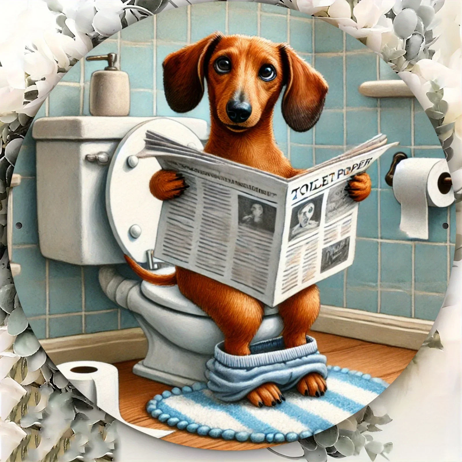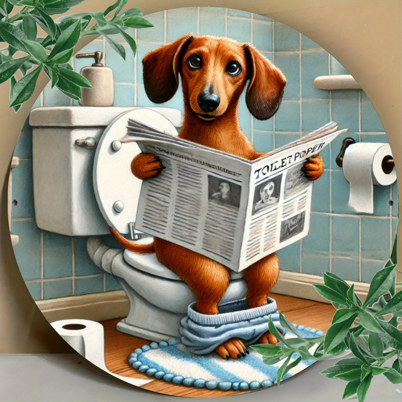 Vintage Humorous Dachshund Round Aluminum Sign